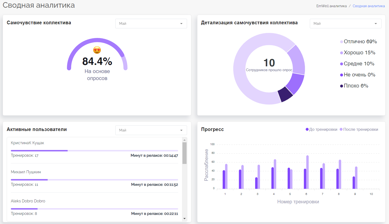 Удобная платформа для мониторинга состояния коллектива и анализа статистики тренировок